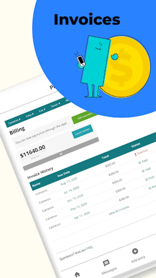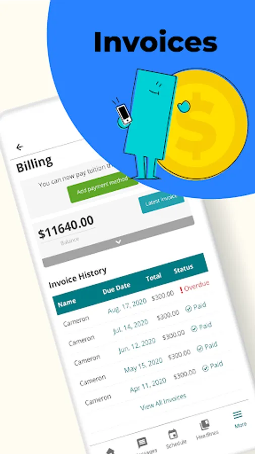 • Billing and payments - Send professional invoices, create billing plans by age group and days attending, and send families a receipt
