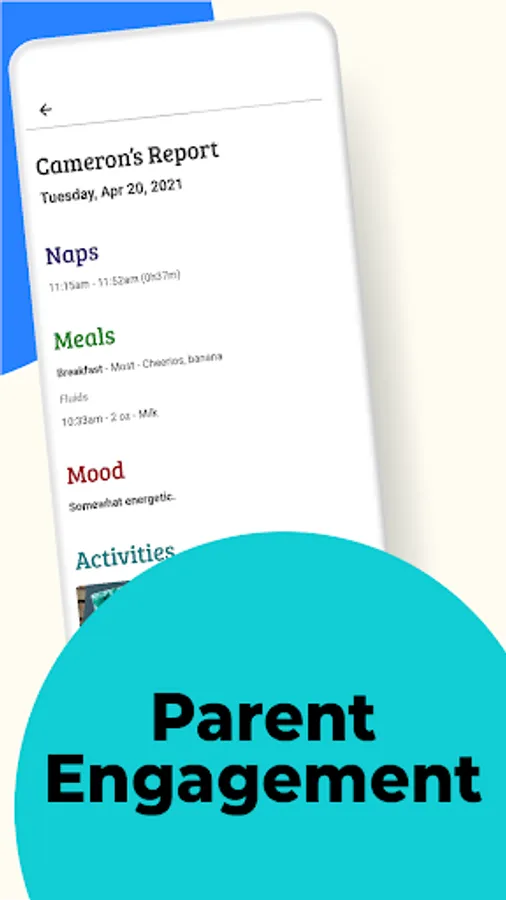 • App parent portal - Parents can view photos, videos, daily reports and schedules, update their infant or toddler's information, and message educators