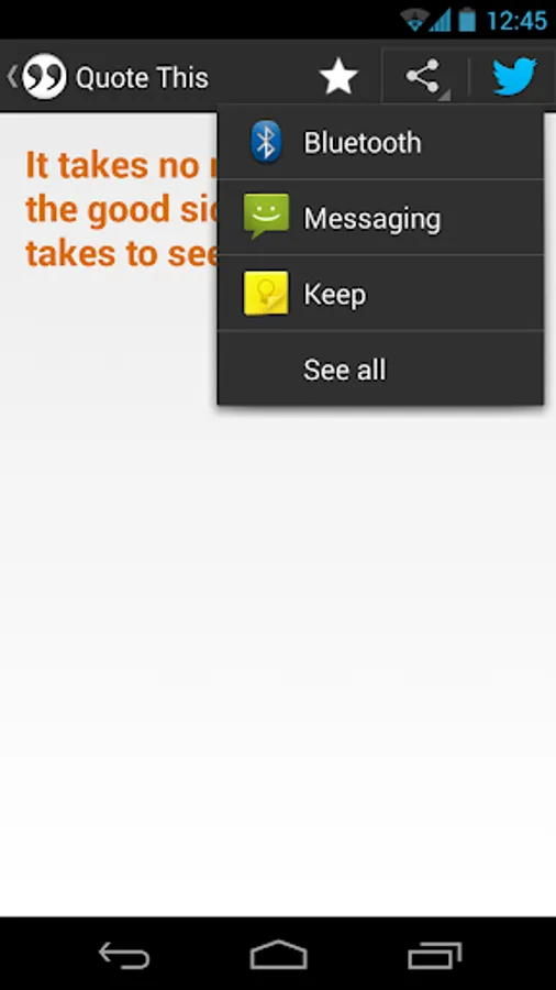 • Share – Easily share quotes via twitter, email, messaging and other sharing apps.