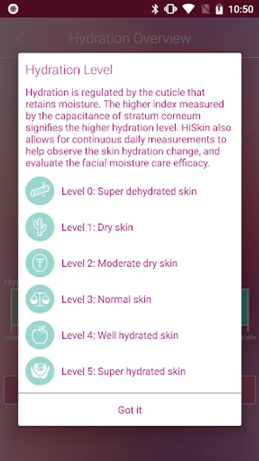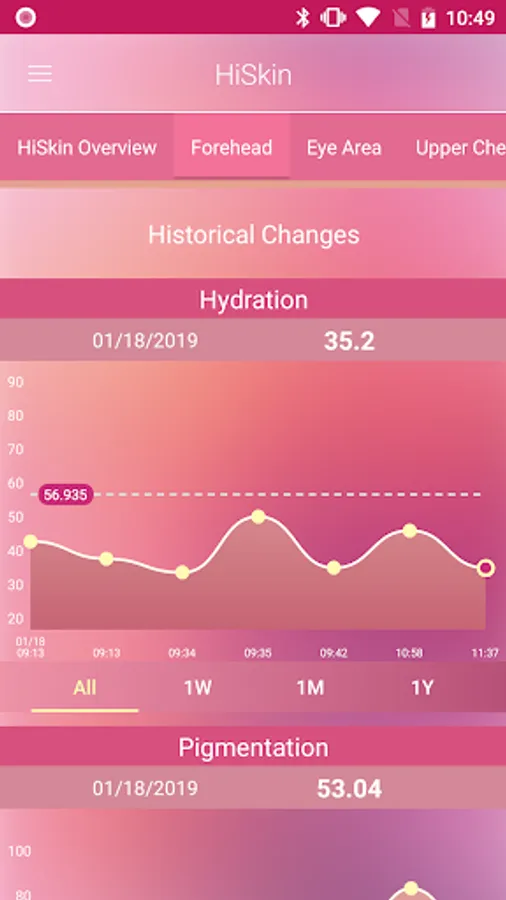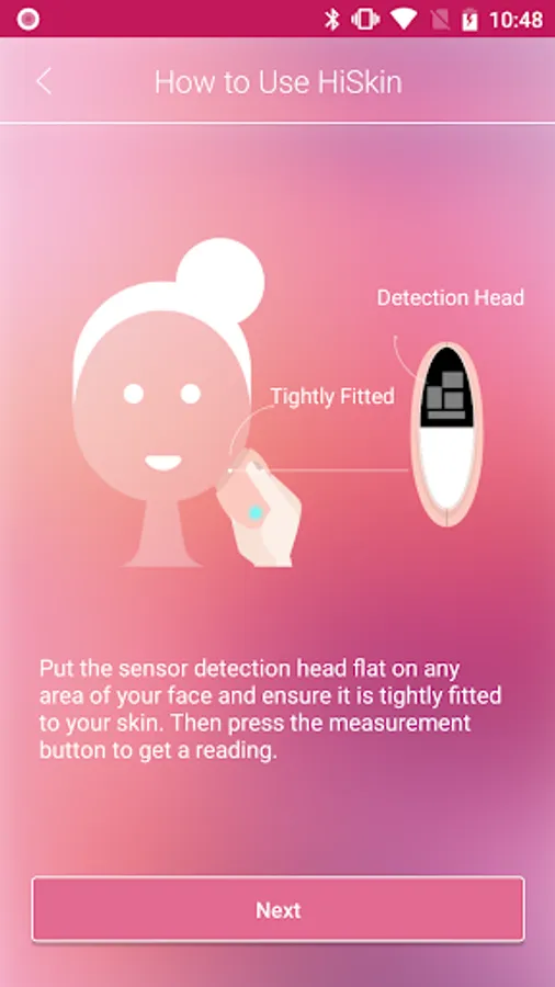 HiSkin app allows you to sync your HiSkin measurement data with your smart phone. Stay updated on your skin condition– whether you’re at home, in the office, or on the go.
