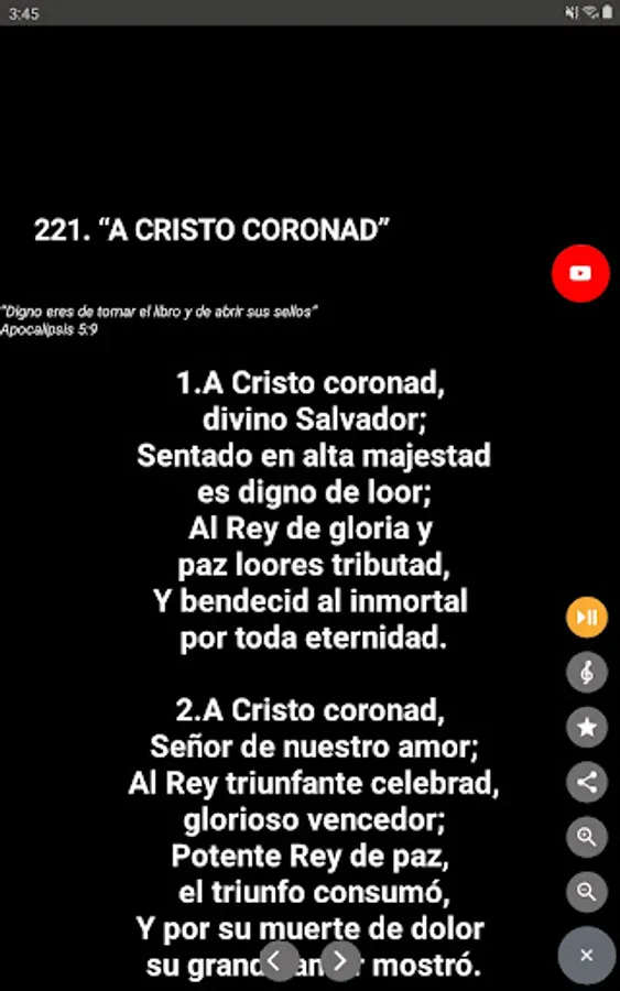 *View each hymn from YouTube without leaving the application.