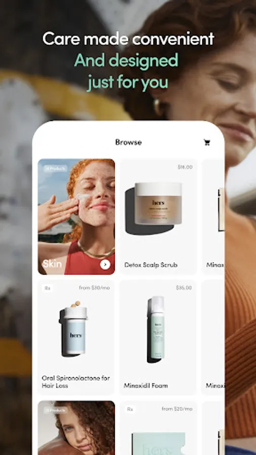 Get everything you need to take better care—all in one place. With Hers, best-in-class treatments for hair, skin, sex, and mental health are just the beginning. Now, you can experience specially-curated health and wellness support designed to complement prescription treatment for everything from anxiety to hair loss to acne.