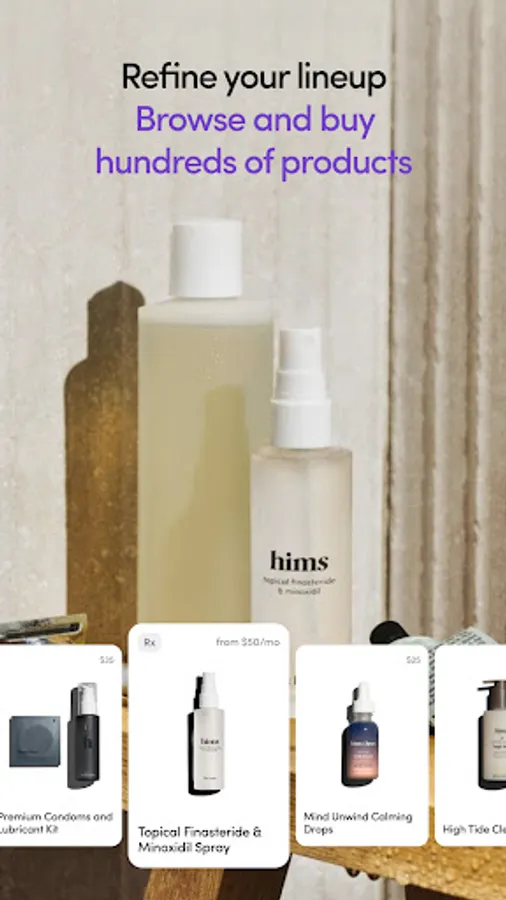 Get everything you need to take better care—all in one place. With Hims, best-in-class treatments for hair, skin, sex, and mental health are just the beginning. Now, you can experience specially-curated health and wellness support designed to complement prescription treatment for everything from acne to hair loss, erectile dysfunction to anxiety.