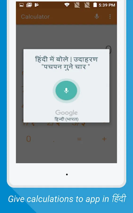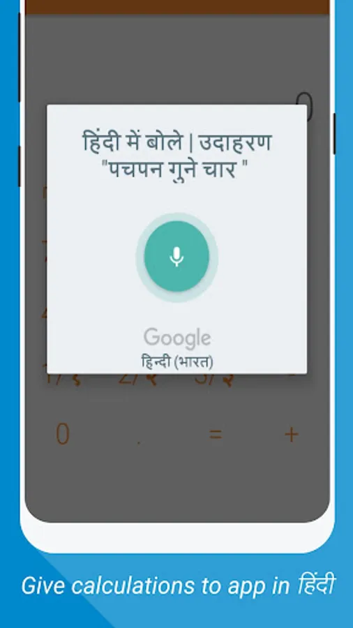 •Just speak out the mathematical expression and Hindi voice calculator will solve that for you and will speak out the result in Hindi.