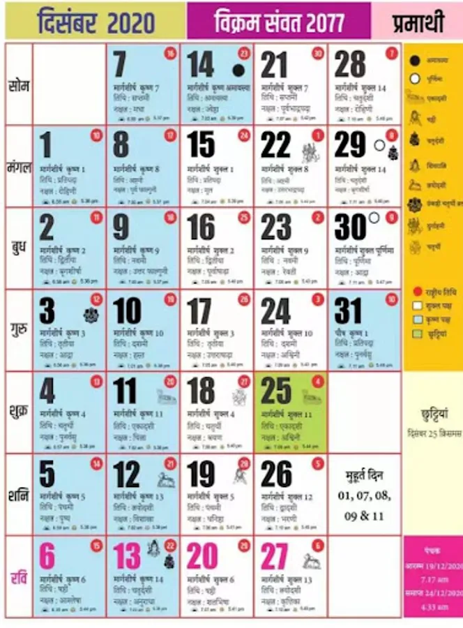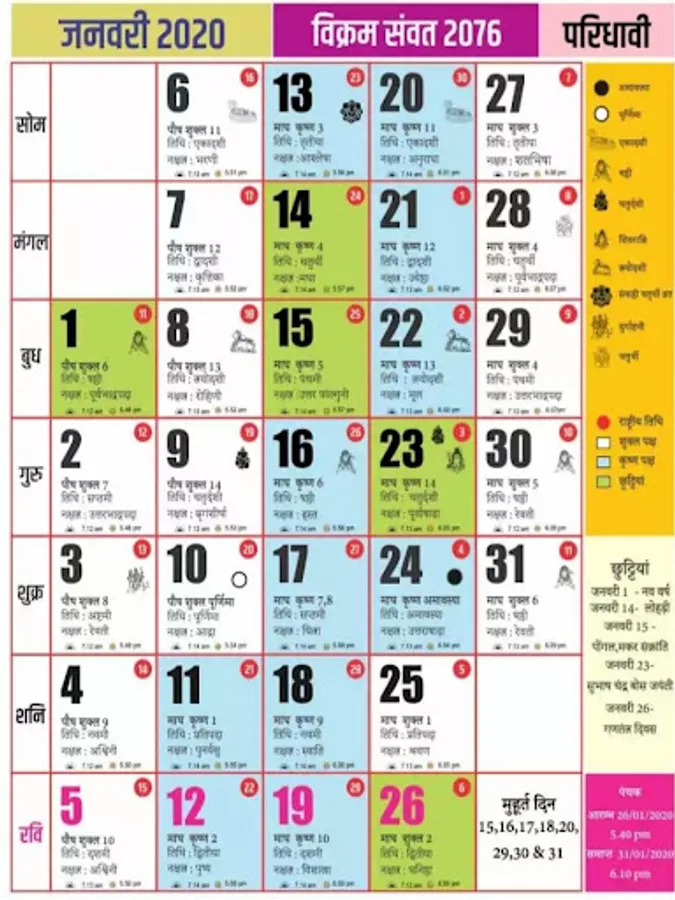 4. Information about public holidays, auspicious days, auspicious times for various occasions including marriage, upanayan etc.