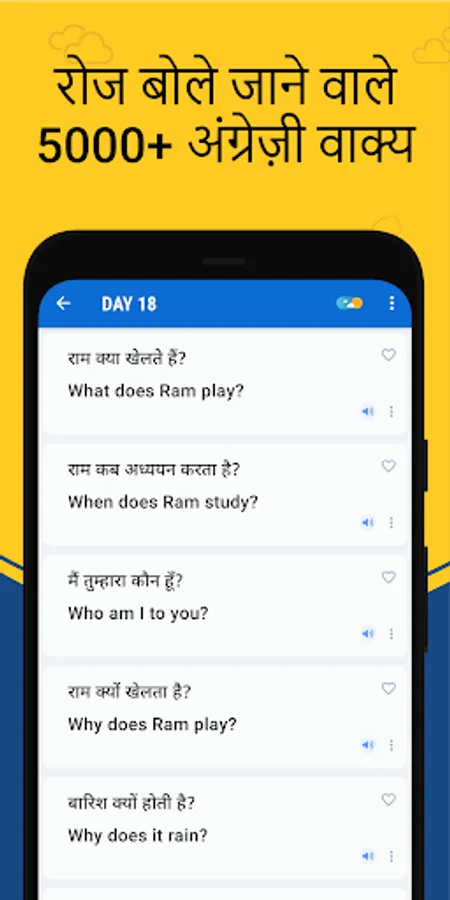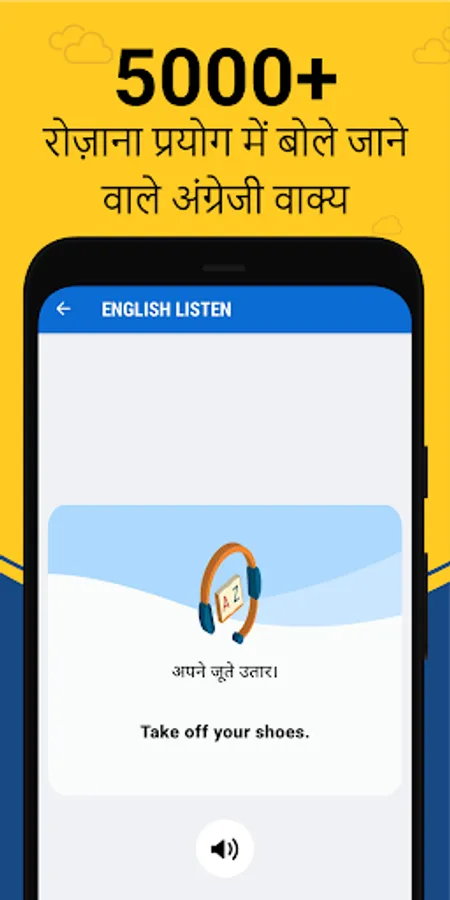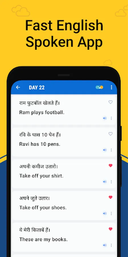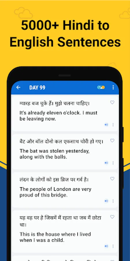 ✔️Fast English Spoken: 5000+ Hindi to English Sentence App Practice helps you learn to listen, pronounce, read and form sentences. You can learn English sentences using this app. You can learn to use the word grammatically in a sentence. Making sentences helps you in your daily tasks. You will improve your English by using this app.