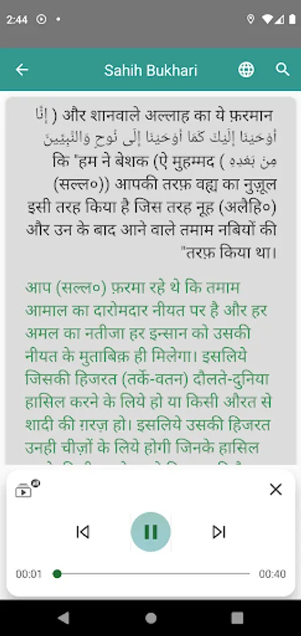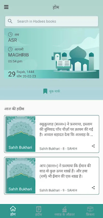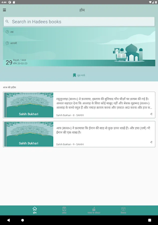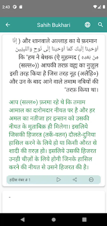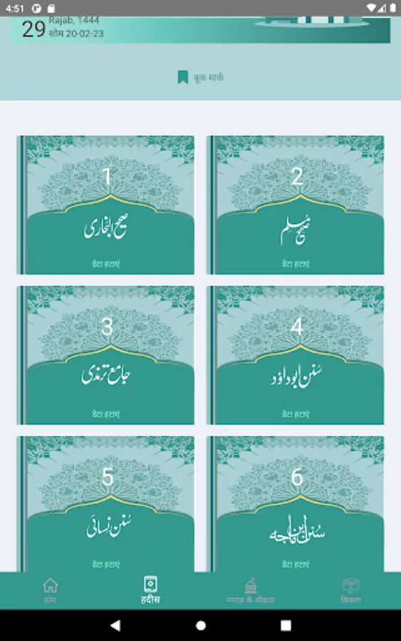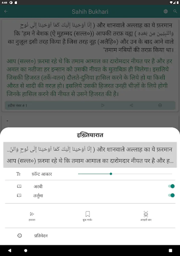 - Bookmark Ahadith to record your reading position or important Ahadith