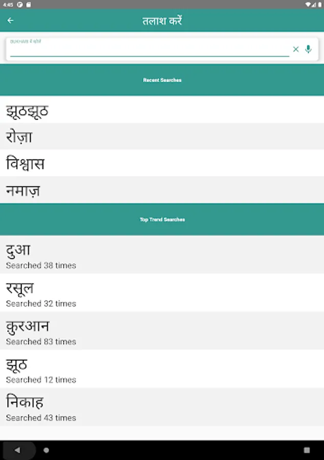 - Filter book chapters based on Sahih (strong in authenticity) and Zaeef (weak in authenticity) Ahadith, or read full chapters without filtering