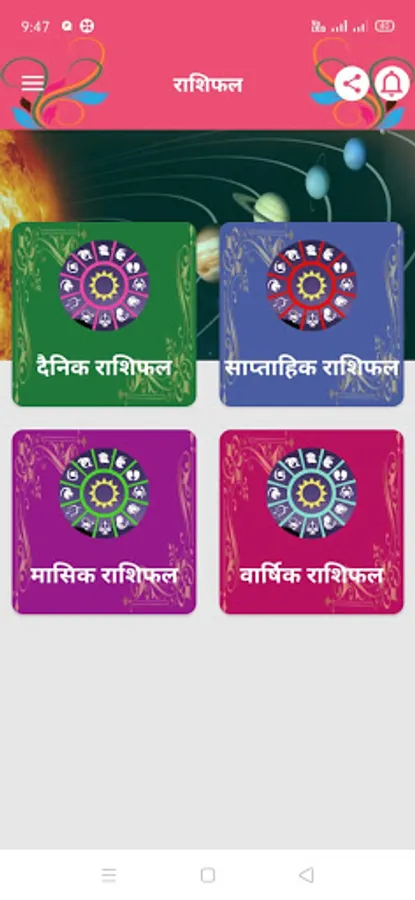 Rashifal app राशि भविष्यफल is specially made for Hindi speaking people in all over the world. Latest hindi rashifal app provides accurate benefits for all zodiac signs calculated by an experienced astrologer.