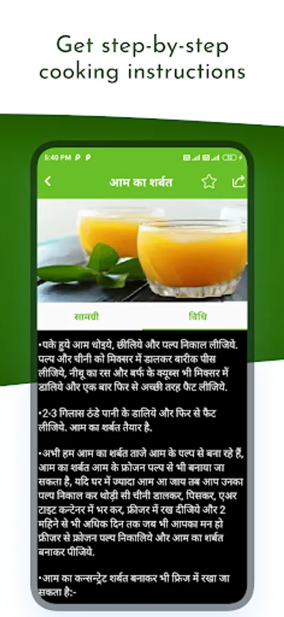Important : Hindi Recipes app gives you each Recipes in Hindi Language only.