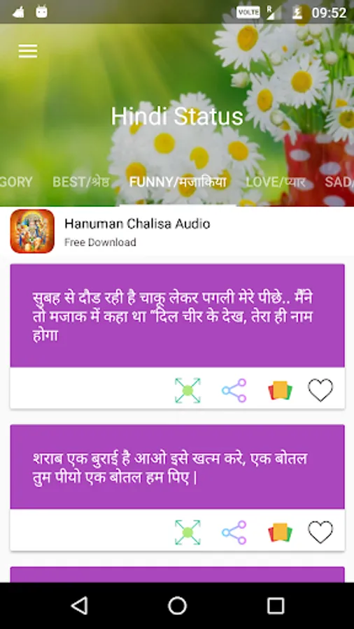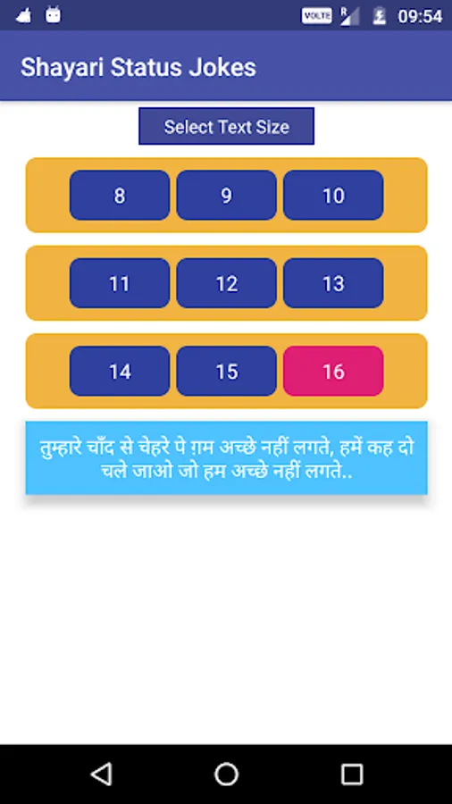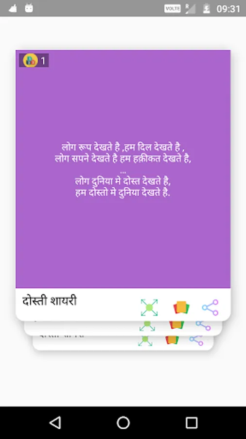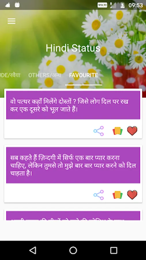 One of the new and latest collection of hindi shayari,hindi status,hindi jokes 2022 in just one app with nice and beautiful user interface and customize all the things according to your mood .Read and share shayari to anyone who loves you .Set and change your daily status according to your mood .