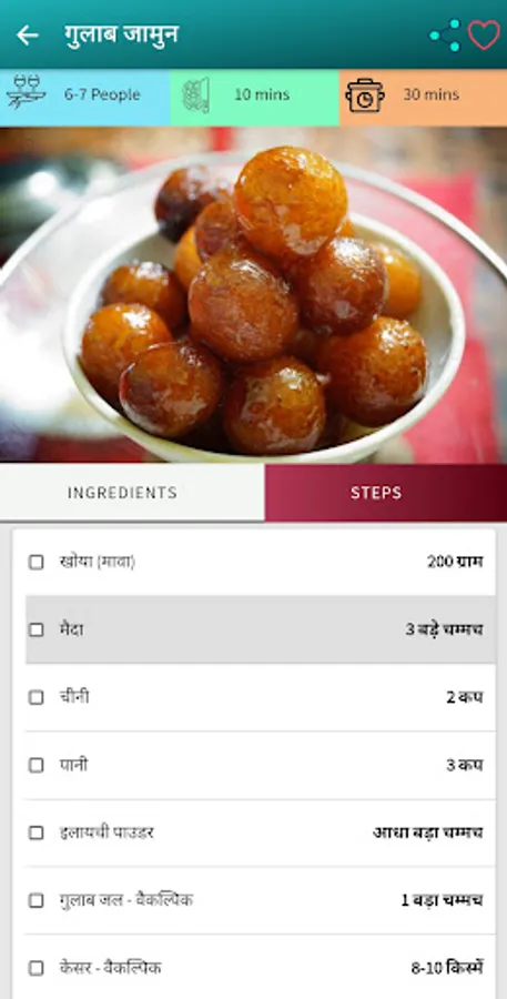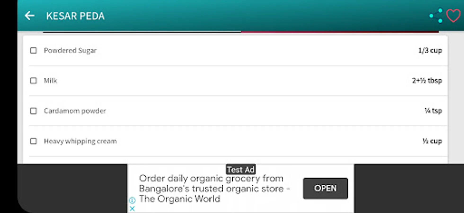 - Save recipes or bookmark in favorite which you love the most by pressing heart button.