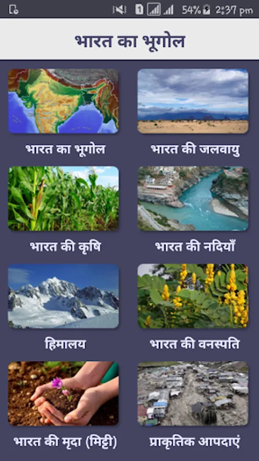 If you are preparing for quantitative exam in hindi language, download this app now. This is the best app for students who preparing for exams. Indian geography hindi app work as your pocket study, you can study every where in your free time. The app also provides general knowledge about indian geography. Best app for Indian geography.