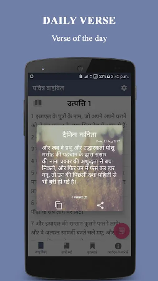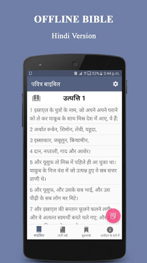 This Hindi Bible application is leads you to the Word of God. Through its attractive features it increases your interest in reading the Word of God thus drawing you closer to Him, The Almighty.