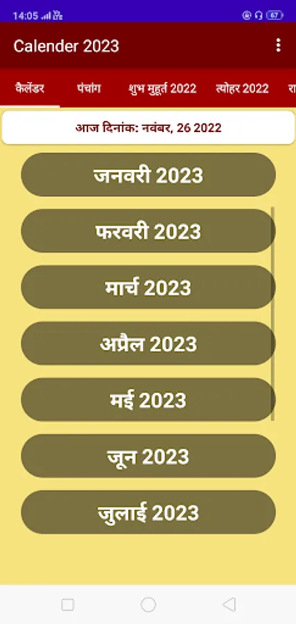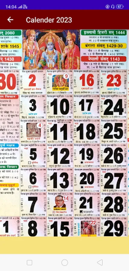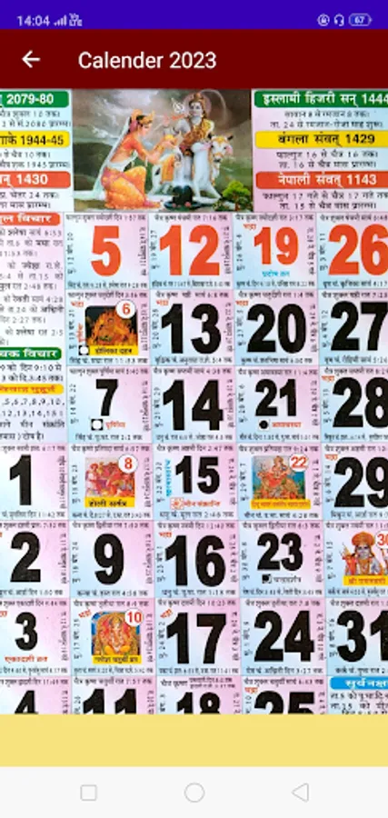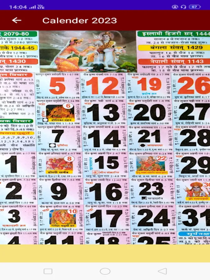 * Free Hindi Panchang Calendar 2023 - हिंदी पंचांग कैलेंडर Offline app consists of details for the entire year 2023 monthly view.