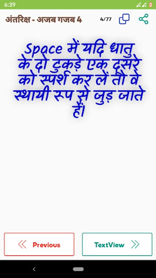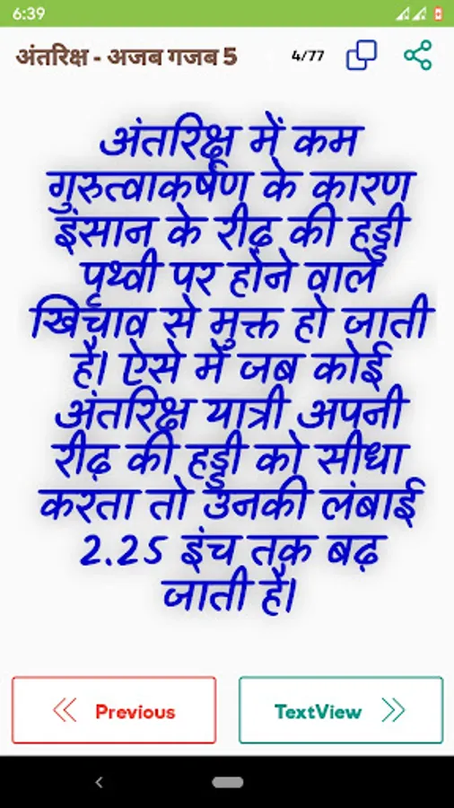 This hindi facts app can work offline and online. Best facts of each ategory such as book, business, life, gk, horror, health, general knowledge, motivation, psychology, space, science, technology, world, history, math, science, game facts like minecraft, free fire, girl and boy animals etc. are provided in this hindi facts app for free.
