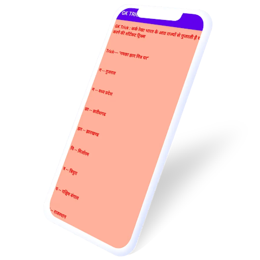 GK trick app is very useful for the all students and other people who are preparing for All government entrance exams like UPSC, IBPS Clerk, IBPS SO, BPSC, BSSC, BIHAR police, SSC CGL, Public Service Commission (TNPSC), SBI Associate Banks PO, MPPSC, AIEEE, AIPMT, CAT, IIT-JEE, PCS, GMAT, SSB, GATE, GPSC, JKPSC, APSC, Mizoram PSC, WBPSC, UKSSSC, CRPF, KPSC, JPSC, HPSC, OPSC, IBPS PO (Institute Of Banking Personnel Selection Probationary Office), IBPS CWE RRB, SBI Clerk, SBI PO, CTET, RBI Assistant, RBI Grade B Officer, SBI Associate Banks Clerk.