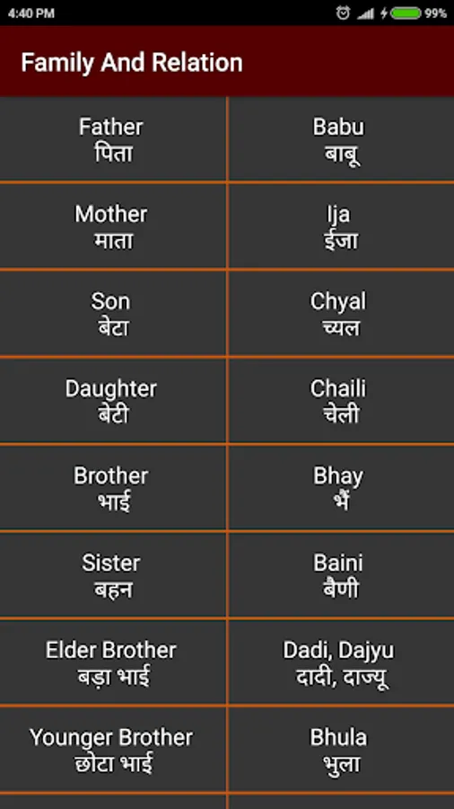 This app is created for those people who want to learn some basic words and conversation in Kumaoni language. In this app you will learn pronunciation for family and relation, Kumaoni foods name, fruits and vegetables, animals name, Kumaoni festivals etc. You will also learn some useful sentence of daily life conversation in Kumaoni language like conversation in traveling, shopping, and general conversation with other people.