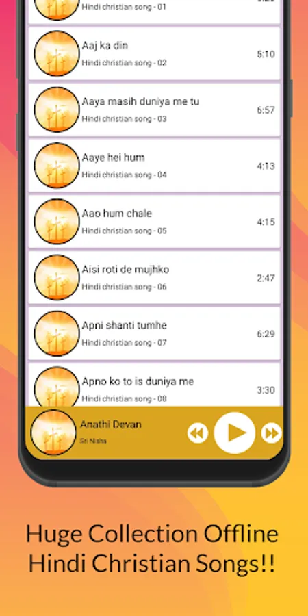 You can listen to Hindi Christian songs and feel blessed by lord Jesus Christ. Just feel the song and connect with Jesus Christ through this Hindi Christian Songs app.