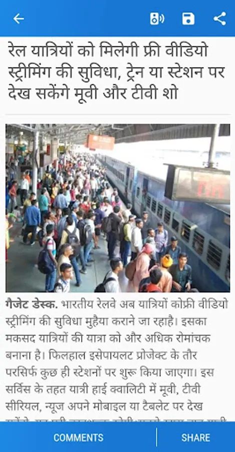 • Text to speech(लिखे हुए को सुनना): You can listen any news by press on speaker button.