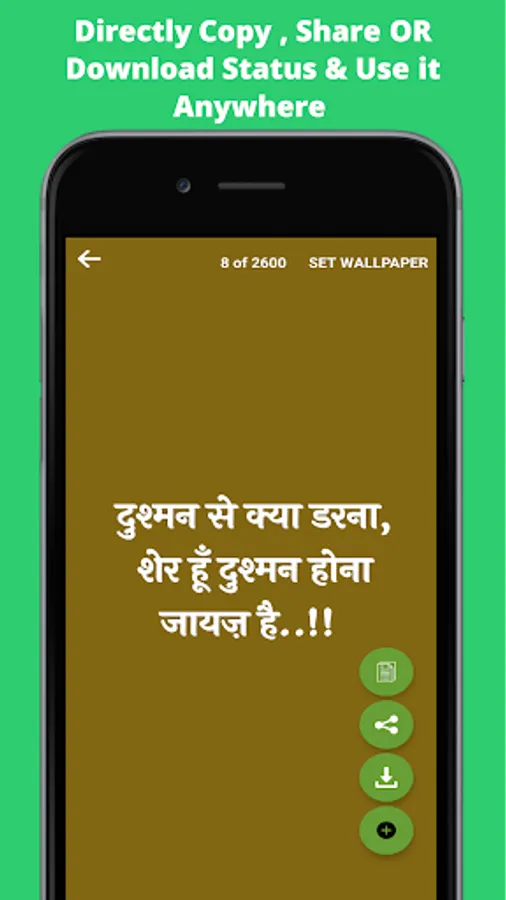 ✔️ Set Your favorite Status as a Wallpaper in one click