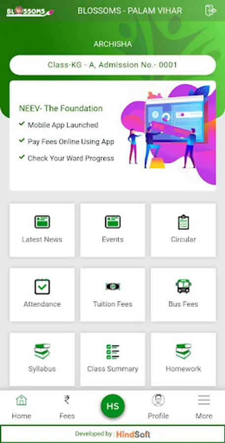 BLOSSOMS, Mobile App Integrated with School ERP Software is developed by HindSoft Technology Pvt Ltd (https://hindsoft.com) which helps schools to manage multiple functions and in turn to increases efficiency in daily tasks. The School ERP Software & Mobile Application has been developed by HindSoft Technology Pvt. Ltd after in-depth discussion & research with various teachers, principals, management committee etc. and various systems adapted by different schools with a purpose to ease the stress behind their working. This app very simple, fast and secure way to access and track student information on regular basis. Once the app is installed, users will start getting notifications for assignments, worksheets, homework, fee dues, attendance, circulars etc.