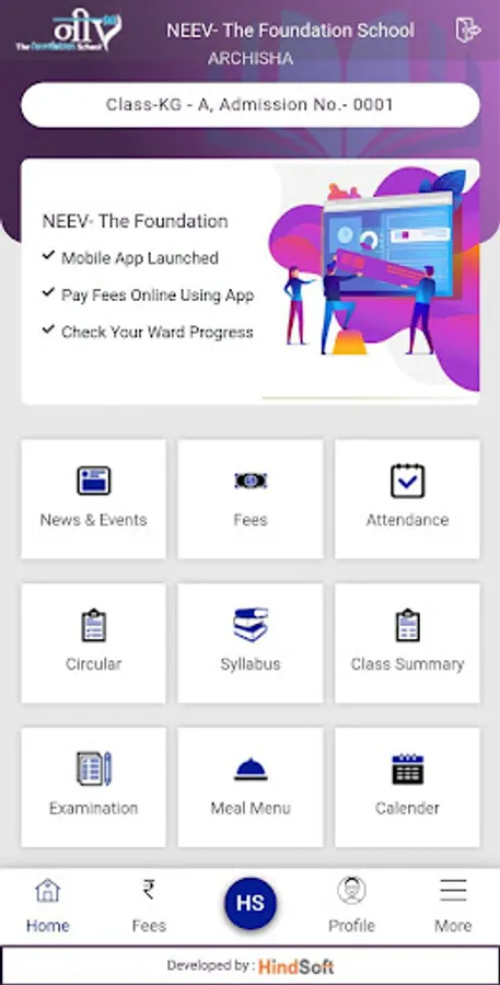 NEEV, Mobile App Integrated with School ERP Software is developed by HindSoft Technology Pvt Ltd (https://hindsoft.com) which helps schools to manage multiple functions and in turn to increases efficiency in daily tasks. The School ERP Software & Mobile Application has been developed by HindSoft Technology Pvt. Ltd after in-depth discussion & research with various teachers, principals, management committee etc. and various systems adapted by different schools with a purpose to ease the stress behind their working. This app very simple, fast and secure way to access and track student information on regular basis. Once the app is installed, users will start getting notifications for assignments, worksheets, homework, fee dues, attendance, circulars etc.