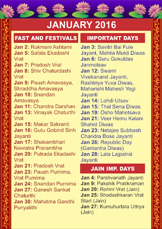 Hindu Calendar shows tithi, paksha, nakshatra, rashi and the phase of the moon.