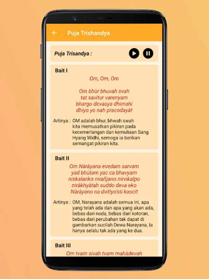 - Daily Prayers: Contains daily Hindu prayers, for example: Wake Up Prayer, Prayer for eating, prayer for learning, etc.