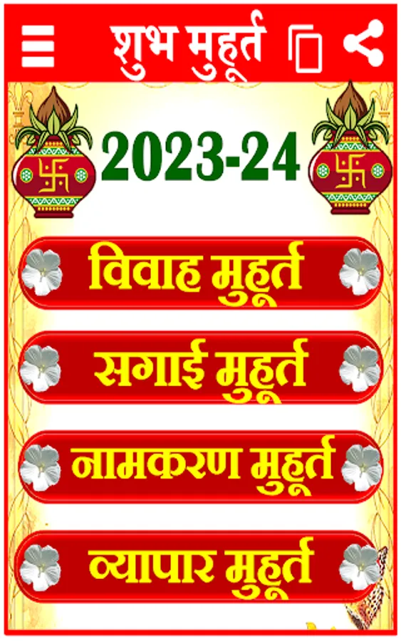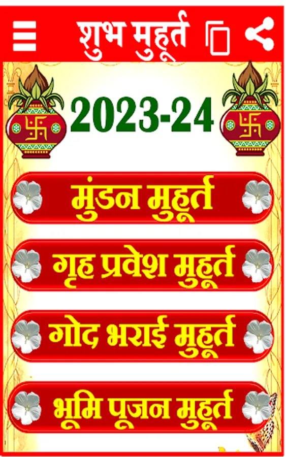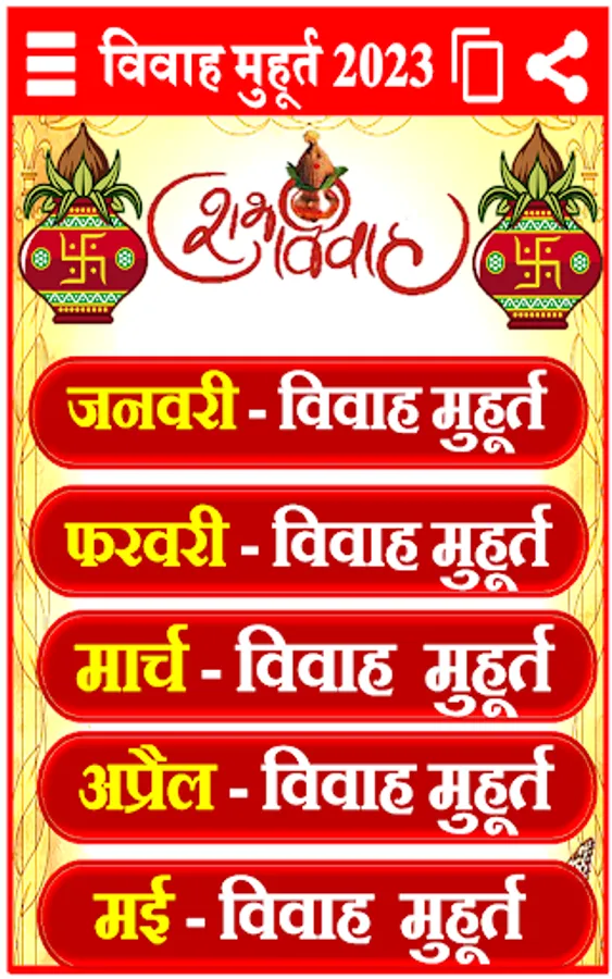This app provides you with Shubh Muhurat 2023 and Hindu Panchang in Hindi. This is one of the most useful apps for knowing Auspicious Timings for Wedding Shop Opening Grah Pravesh Mundan Naamkaran and Purchase a Vehicle Easy Way. Here you can know about Today's Panchang auspicious time and Shubh Timings 2023. You can use this app online as well as offline.