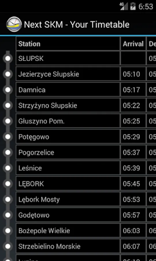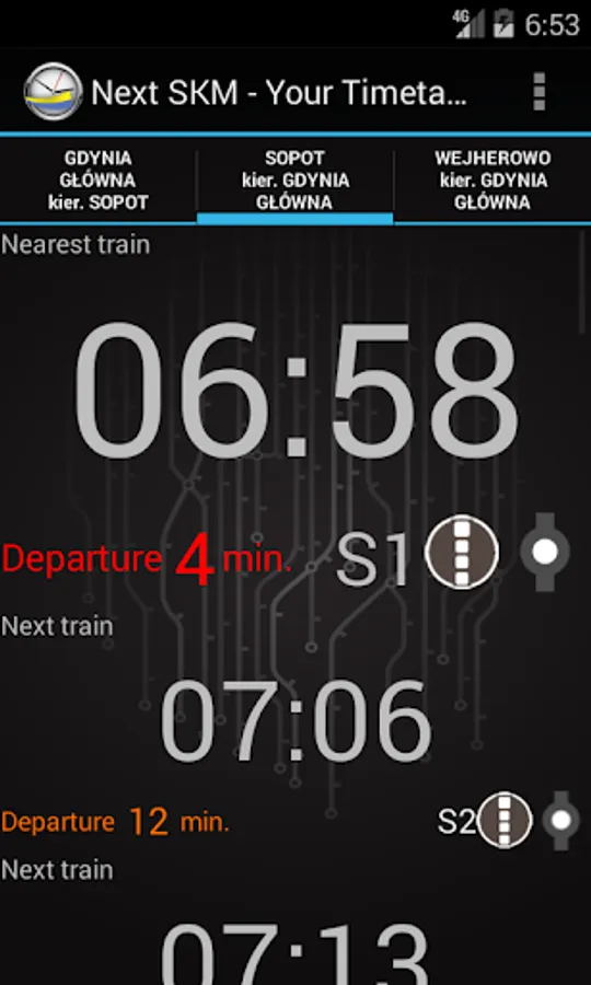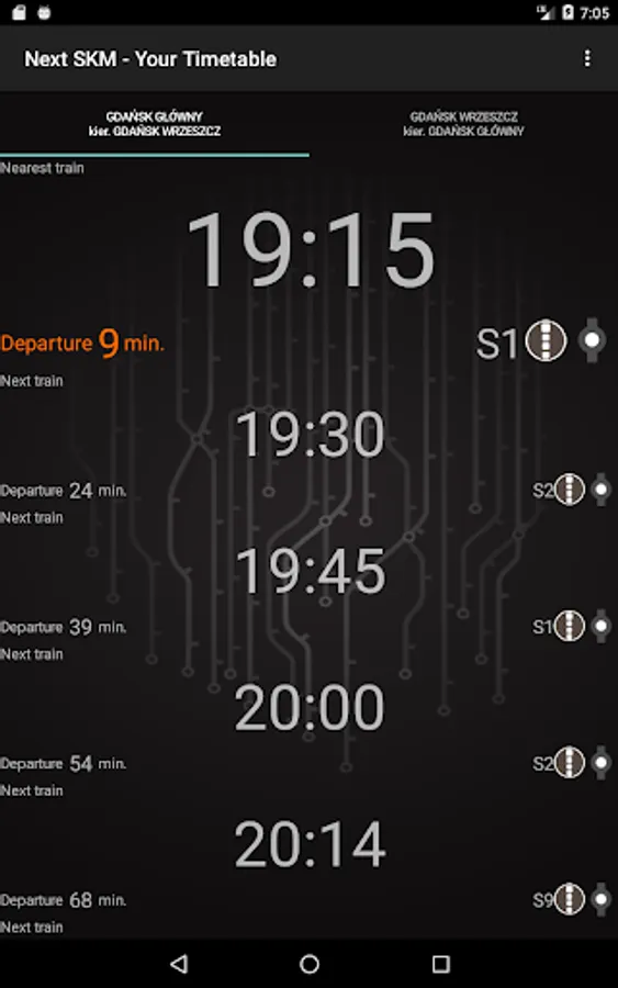 SKM trains in Tricity, Poland (Gdańsk, Gdynia and Sopot) are cheap and fast way of traveling. Timetable is available on the official website, so why bother with this app? Well, with traditional timetable you have to select arrival station, enter the date or at least time and search for train. When you travel often, there are stations you visit everyday. Working or studying requires you to travel between 2, maybe three stations. That's where Next SKM comes by! Select your favorite connections and have the nearest train departure time presented, so you'll know to hurry or step by to buy the groceries :)