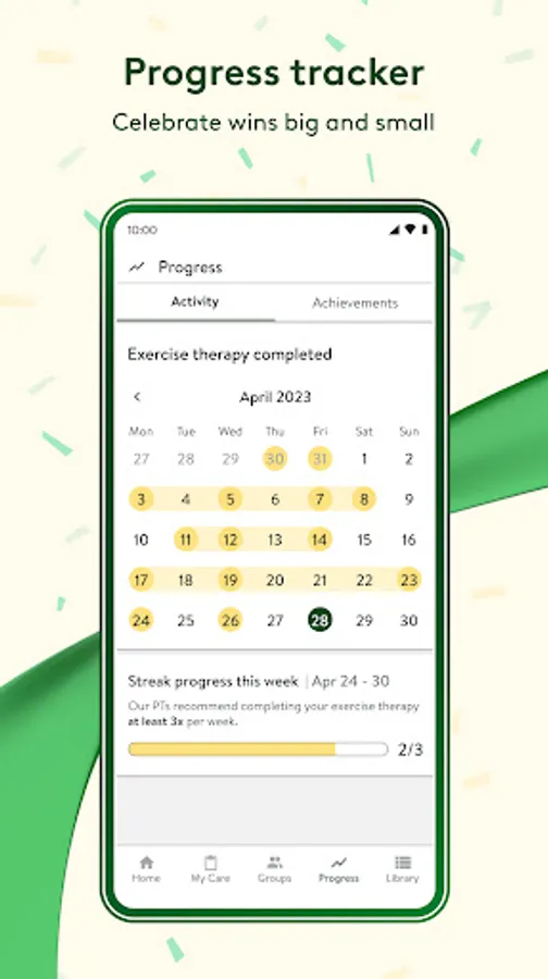 The Hinge Health app has everything you need. Get your exercises, reach out to your care team, and learn about your condition. Set goals, track your progress, and celebrate all your wins big and small.
