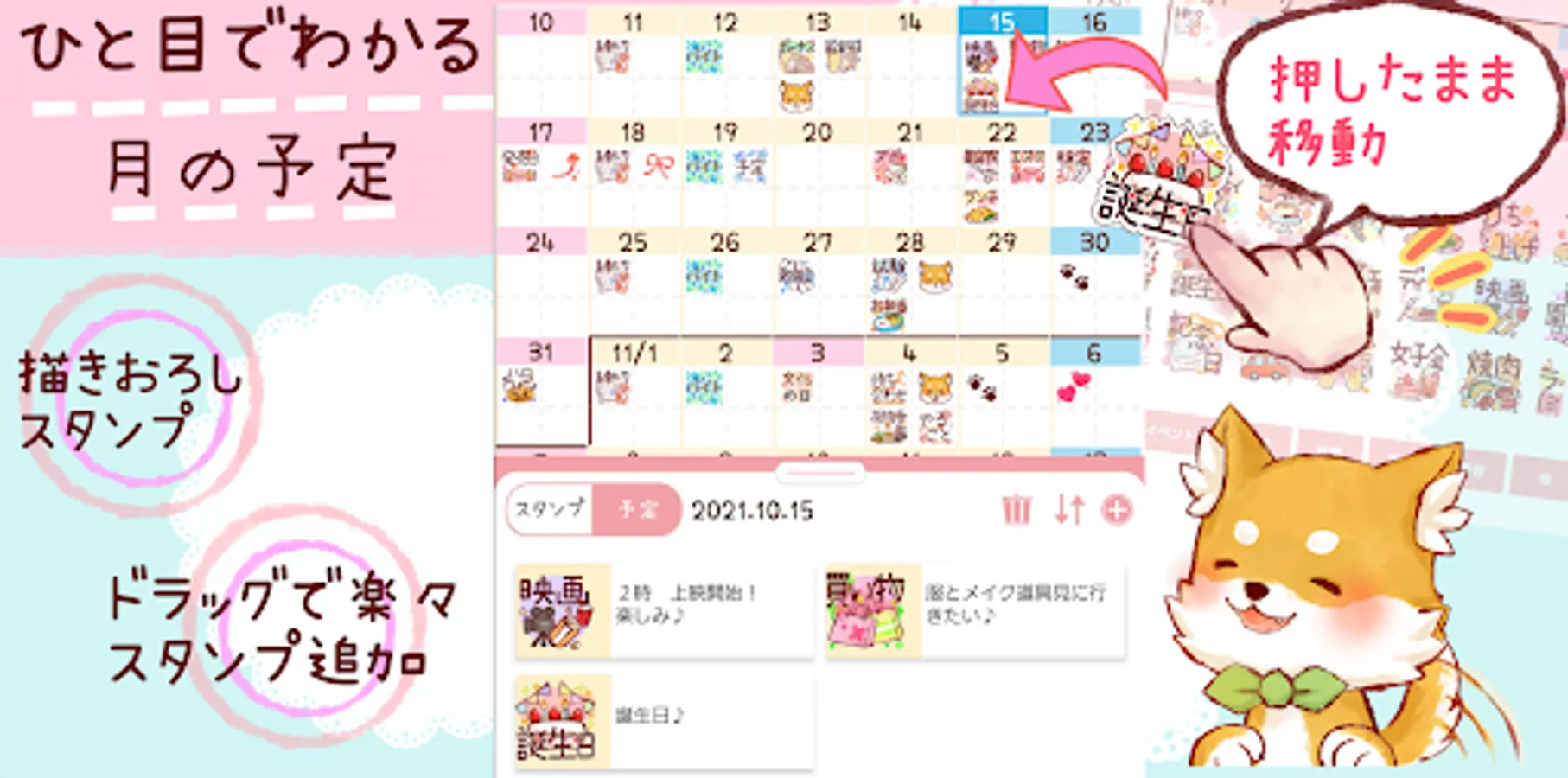 ――You can make a schedule just by bringing the stamp to the calendar with your finger (Drag & Drop).