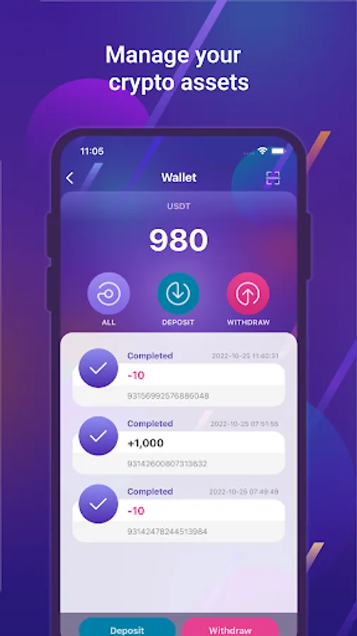 Users can manage, deposit and withdraw the high market-valued cryptocurrencies such as USDT