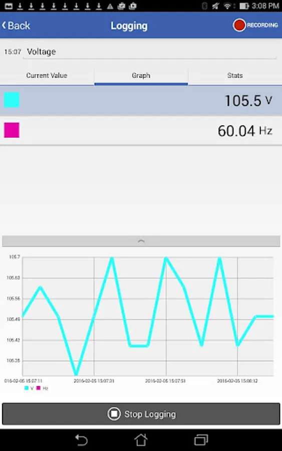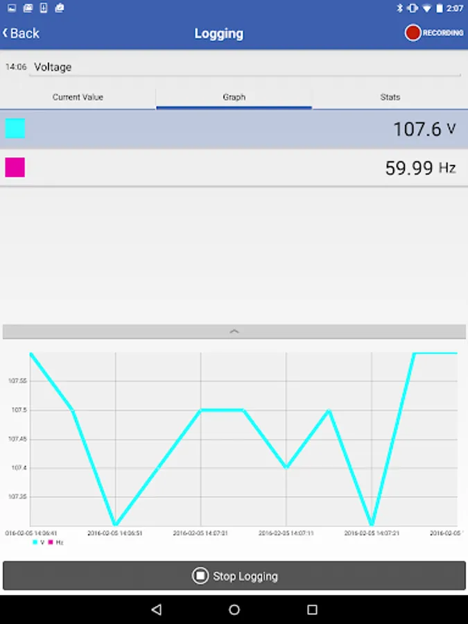 - Event Recording: This is a function that allows you to easily visualize when and how much measuring values exceeded the pre-set thresholds on your smartphone and tablet. This is ideal for troubleshooting of over load and leakage current and voltage drop, for example.