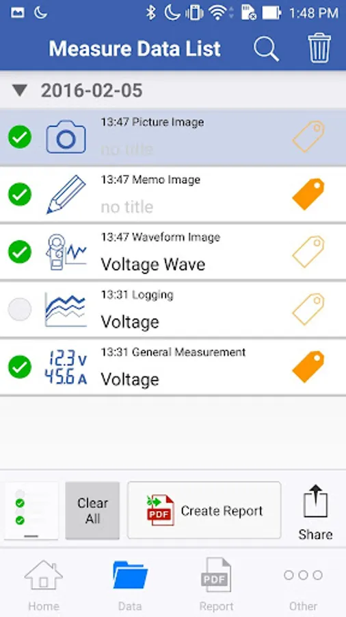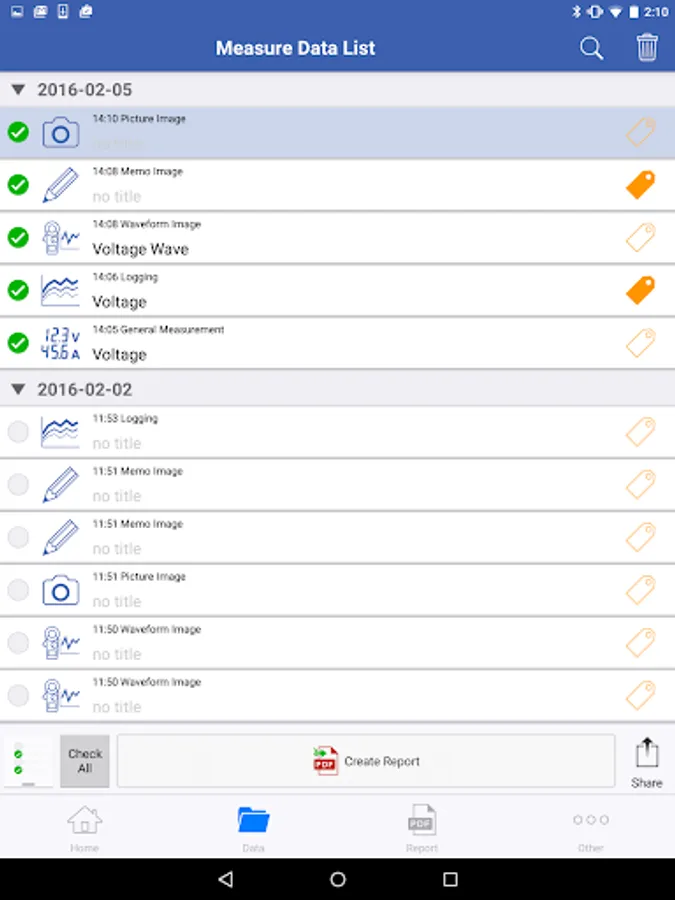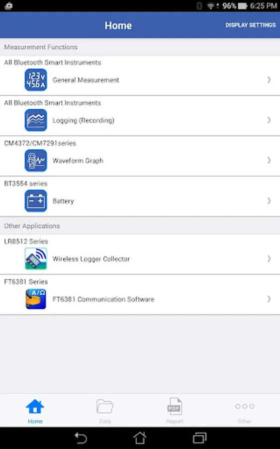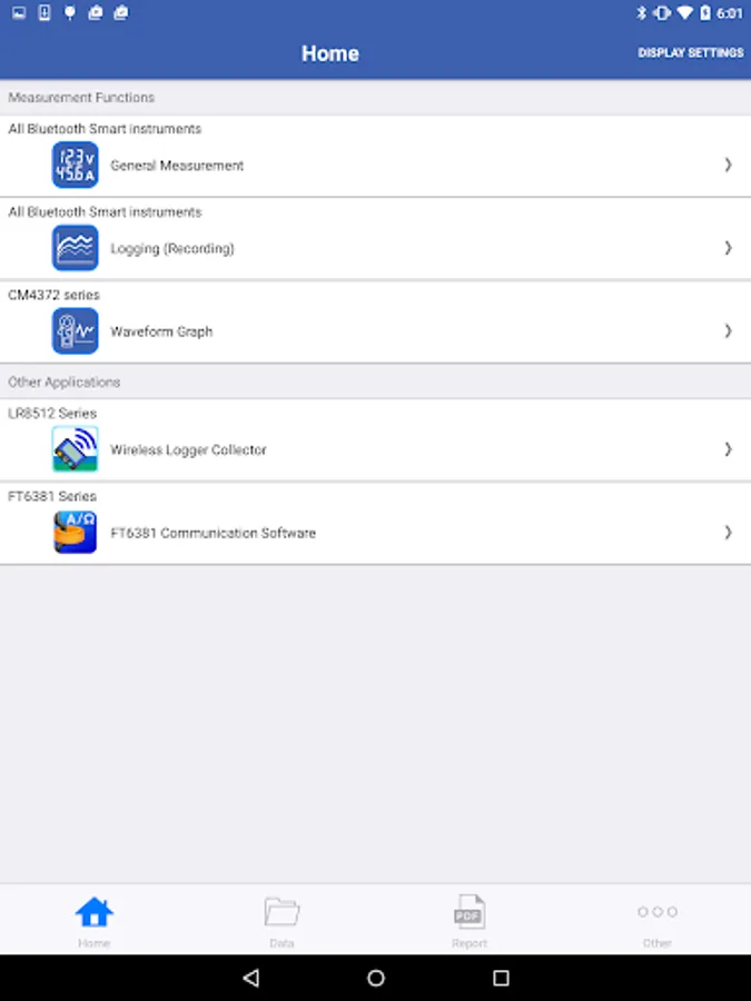 - General Measurement: This function is useful when you would like to get the multiple data. You can connect up to 8 measurement instruments and save the data manually. In addition, location information and photos can be saved with measured data.
