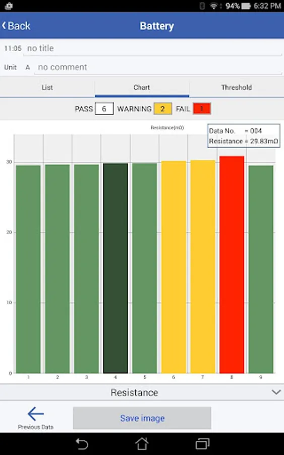 - Battery: This function is used to record measurement data transferred from battery testers. The recorded data can be displayed in the graph or the list form.The battery number can be confirmed audibly by the Measurement Recording Guide function.