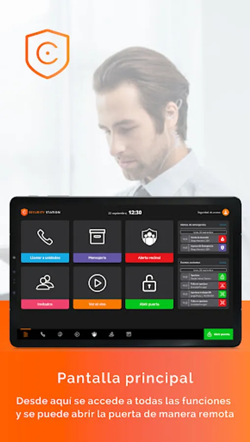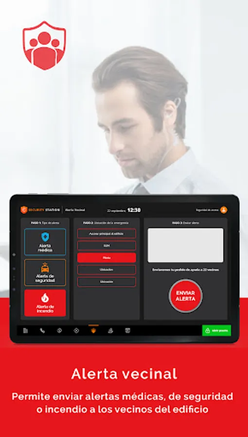 • Neighborhood alert: The guard can send neighborhood alerts to all residents and the monitoring center in case of facing an emergency such as medical, security or fire emergencies. In turn, the guard will receive in real time all the emergencies issued by the residents of the building.