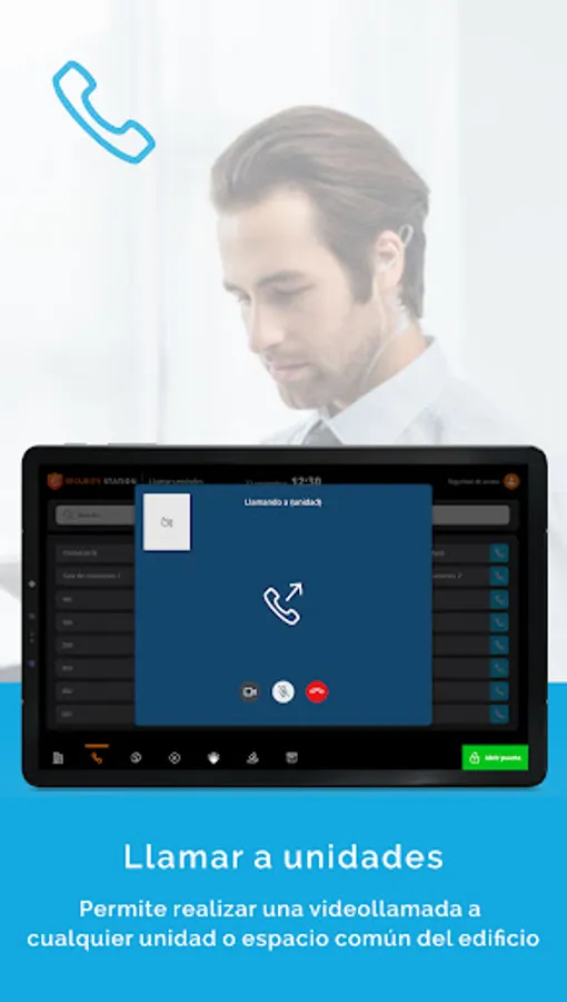 • Calls to units: The guard will be able to communicate with all the residents of the building to their Hipcam applications, to all the special units of the building and to the monitoring center if the building has it.