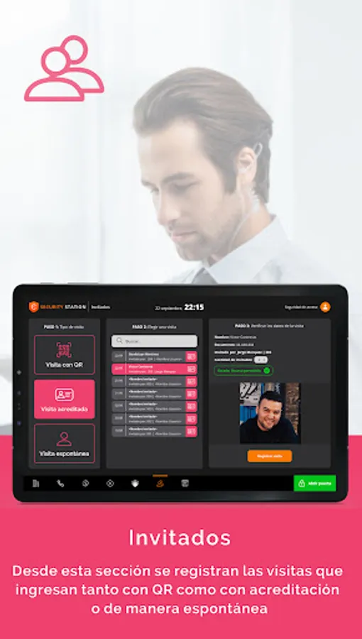• Management of visits: The guard will be able to validate the access of the visitors, whether he has a virtual key, arrives spontaneously or is on a list of accreditations.