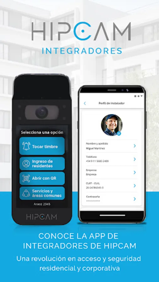 The app for registered Hipcam installers is a tool designed to run on an Android phone and allows quick and easy setup of a building with all the necessary hardware devices.