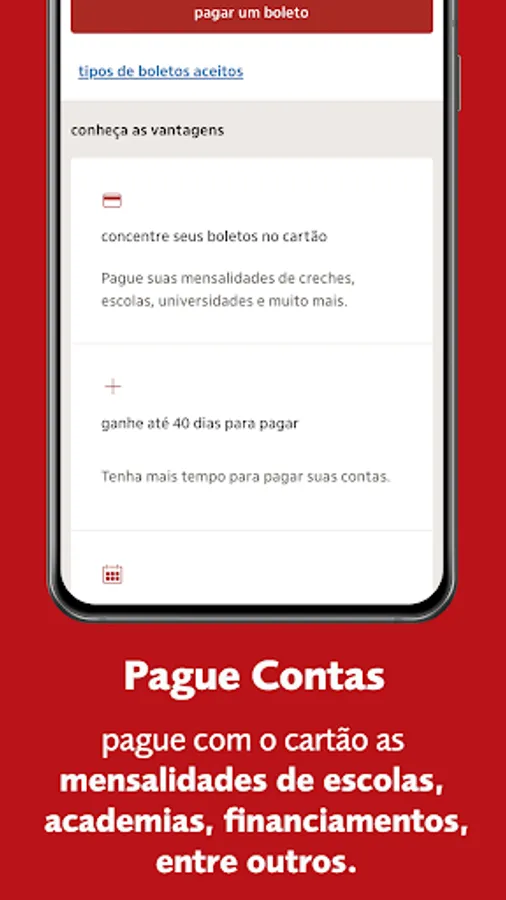 ◉ Hipercard gives you that helping hand! You can also pay bills for your bills in the app.