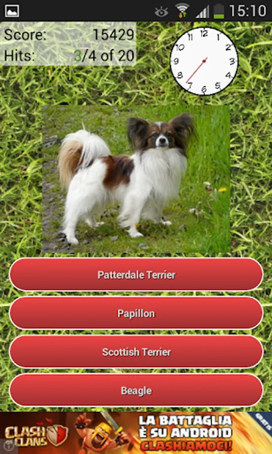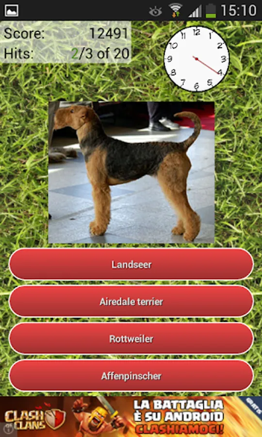 The quiz is very simple: you will be offered 20 questions to answer. For each question, you will be shown a picture of a dog and you'll have to guess the race among 4 possible solutions. It seems facie? To win many points and get a good position in the overall standings, you'll have to be quick to respond. And then do you really get to know hundreds of breeds of dogs? Finally you have a quiz that will allow you to test your skills.