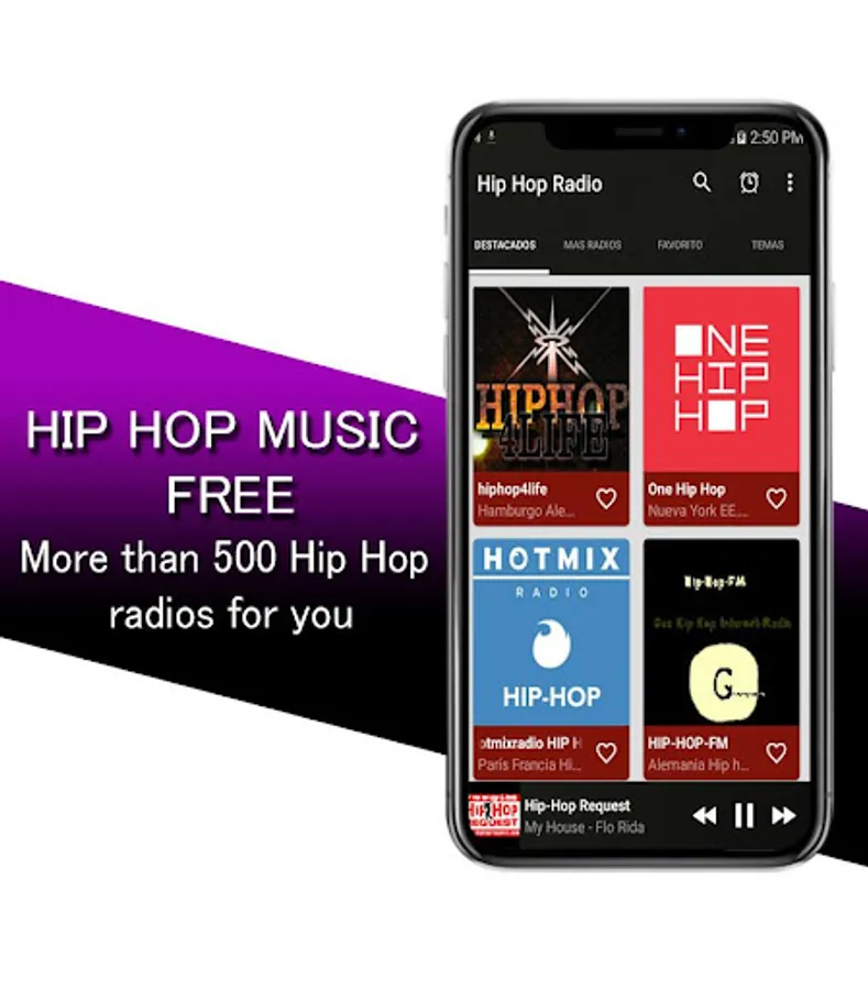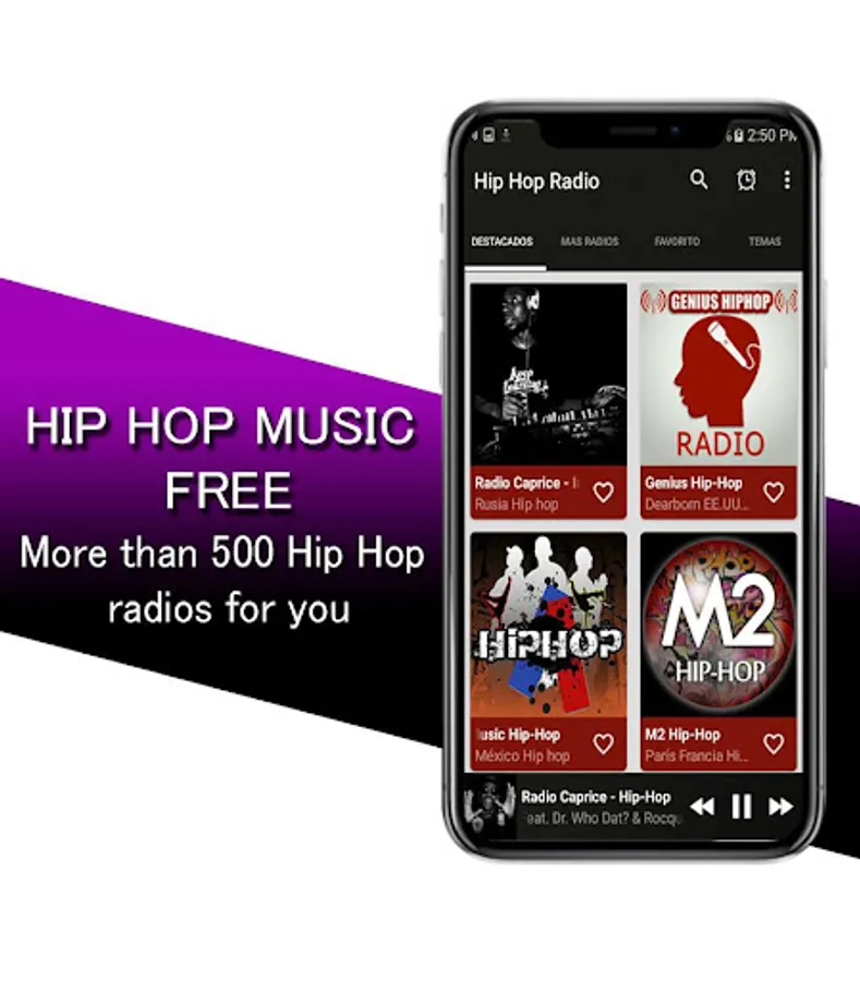 Hip Hop Music Free with a modern and elegant interface, you also have the option to select a super fast access to your favorite radios.