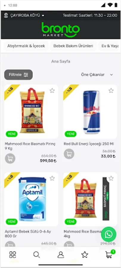By downloading the Bronto Market mobile application for free from the App Store or Google Play Store, you can create your account or log in with your existing account with a short registration process. You can navigate between categories or find the products you are looking for using the search bar, add the products you like to your cart and complete your shopping. After you confirm your order with secure payment options, your order will arrive at your door as soon as possible.
