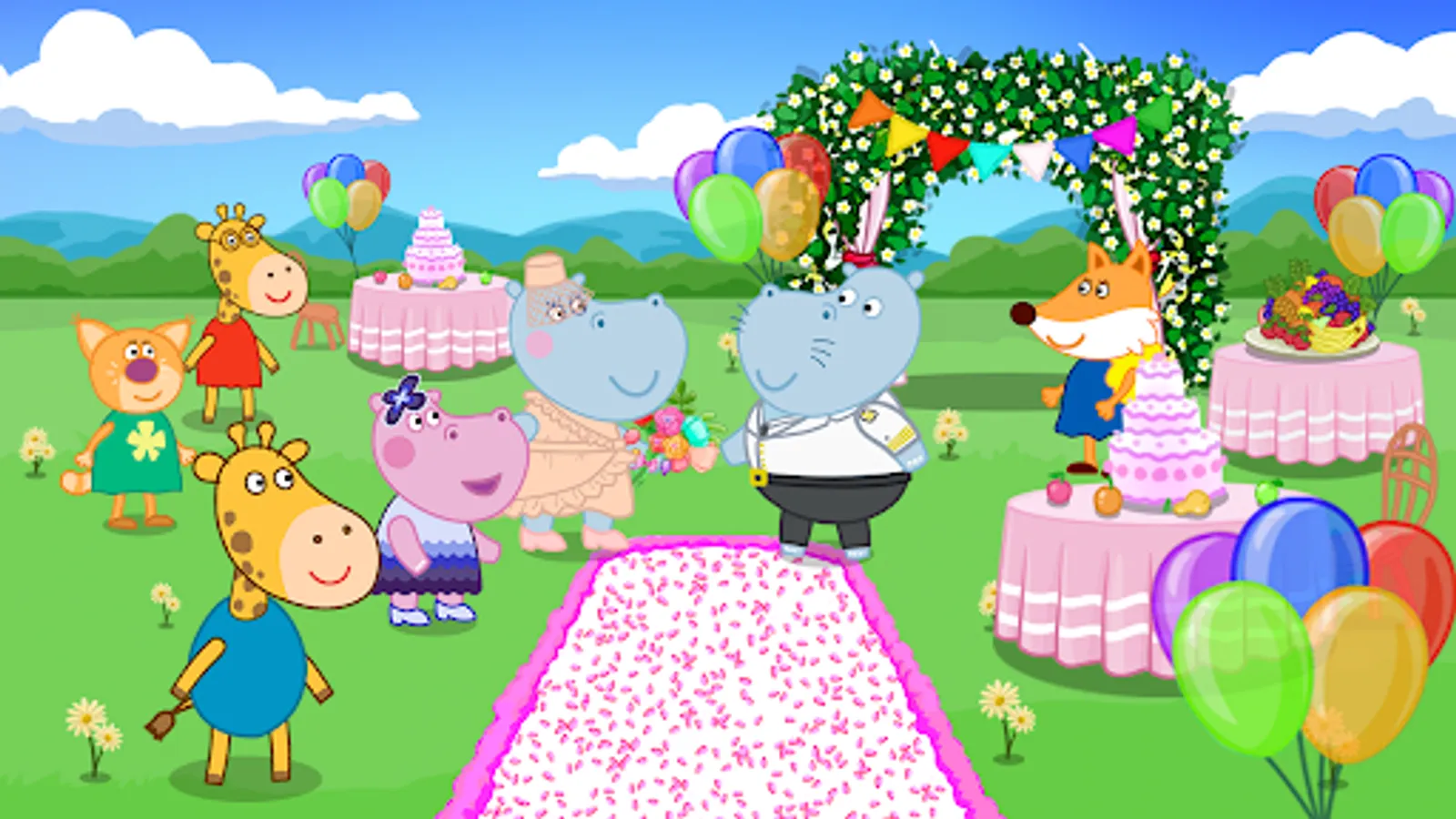 Finally! Hippo's cousin is getting married! All the Hippo town is waiting for this wedding planner. But the wedding party with a wonderful bride and a handsome groom will be a little bit later. Now the wedding preparation is in a full swing. It is time to visit a wedding shop, choose dresses, do a make-up, and, of course, to find the most beautiful flowers for the most amazing bouquet. It means new interesting games for girls and an astonishing wedding, the wedding of your dreams, are waiting for you!