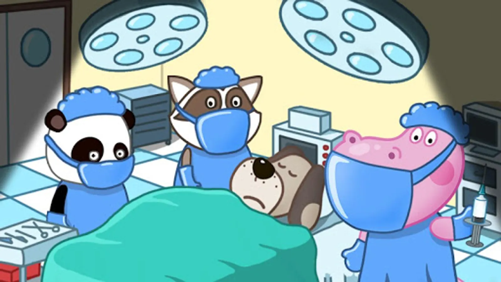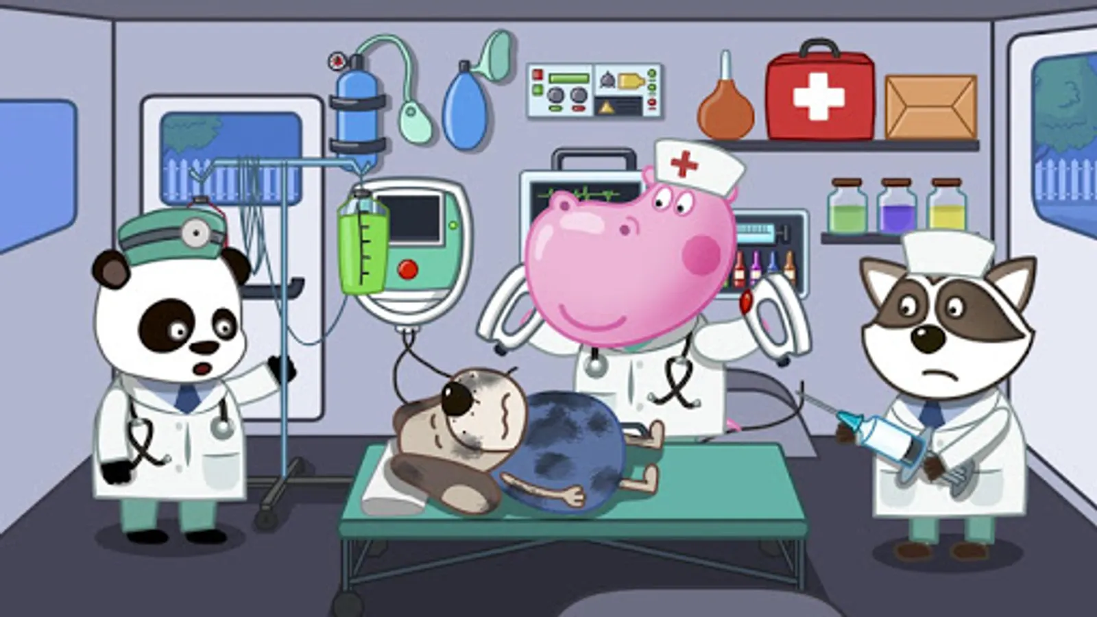 Popular kids games about Hippo hospital adventures have new game about surgeon doctor! Today we will cure patients who need urgent medical help. Emergency service 911 looks for experienced surgeon to make the most difficult operations for all the possible patients. Do you want to know how vet doctor works, to cure animals, to make injections and vaccinations? Then play our medical games for kids! Interesting surgery will tell kids about a new exciting profession.
