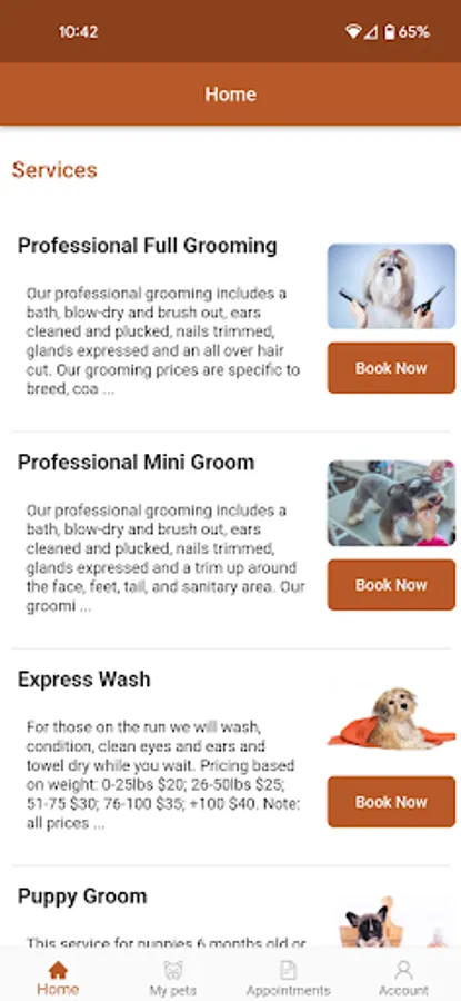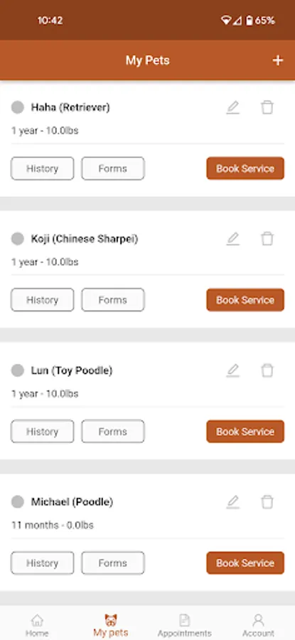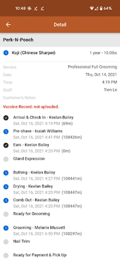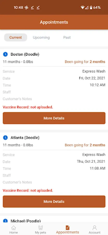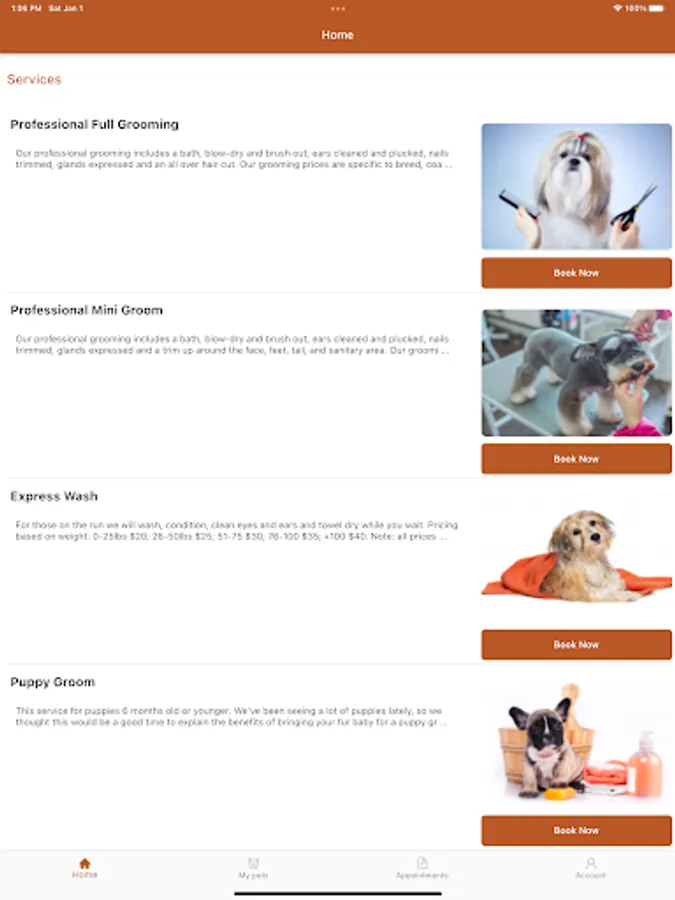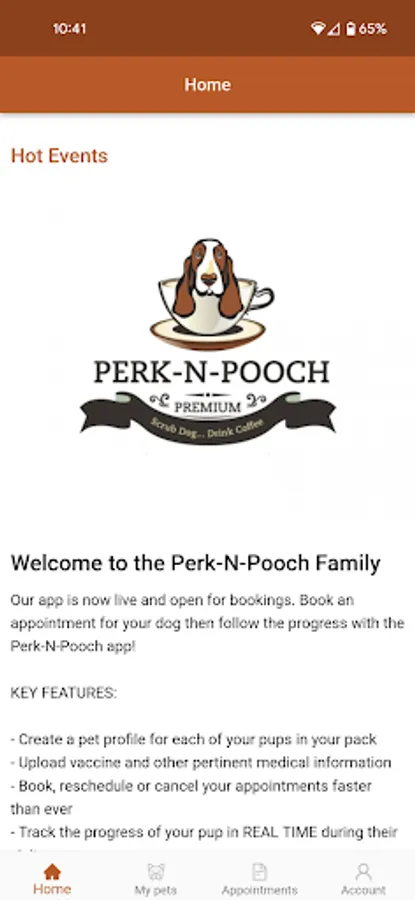 Book an appointment, follow the progress of your pup's appointment, and have a complete history of your visits.