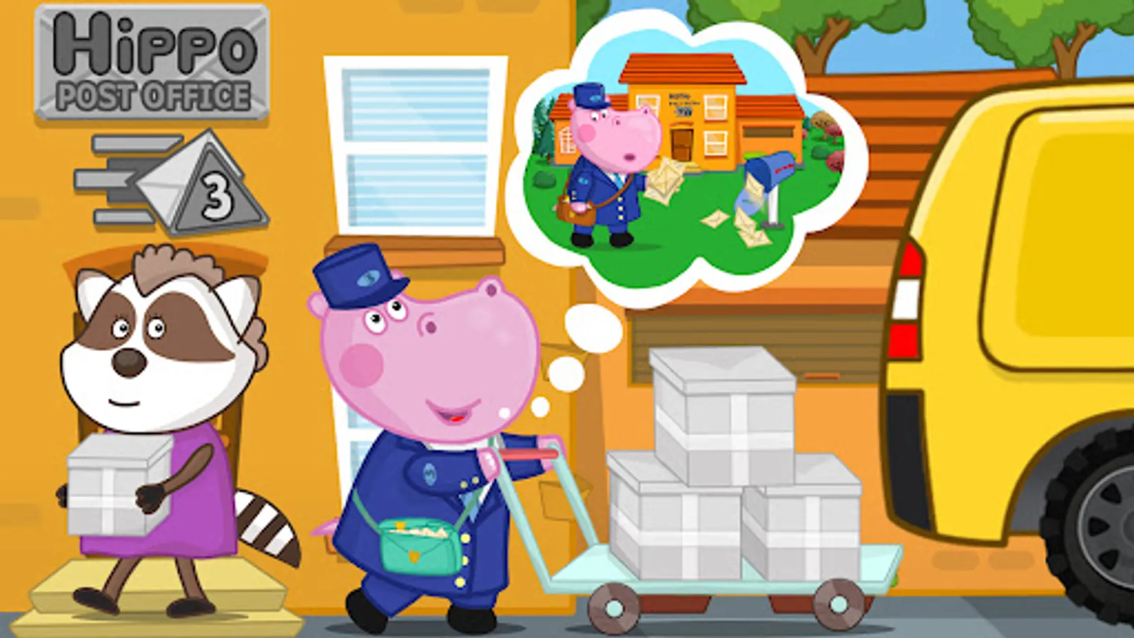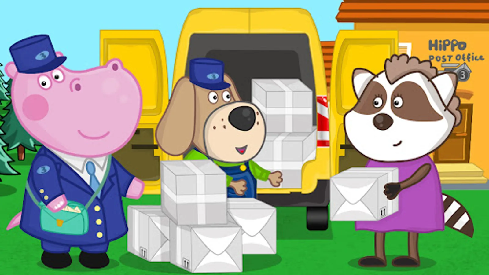 A new modern post has opened in the Hippo town! Do you want to learn more about the profession of the postman? Do you want to turn on a quadcopter and look after delivery of parcels and letters? Or maybe you are interested n the work of policeman on the post, how customs office checks parcels and letters, and what interesting tasks the modern post has? Then let's go together with our beloved Hippy to a new post office. The post is waiting! Today you are a chief postman!