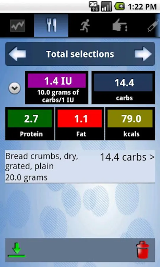 HelpDiabetes is a carb counter application with food database that helps you to keep your blood glucose level on track. Measure and enter ingredient data or select from predefined serving sizes. This app will generate a grand total for carbohydrates, fat, protein and kcal. It can also calculate an estimate of the amount of insulin needed based on your carb-insulin ratios.